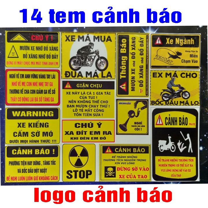 chỉ còn 24,300đ TEM CẢNH BÁO TRANG TRÍ XE MÁY 14 LOGO CẢNH BÁO