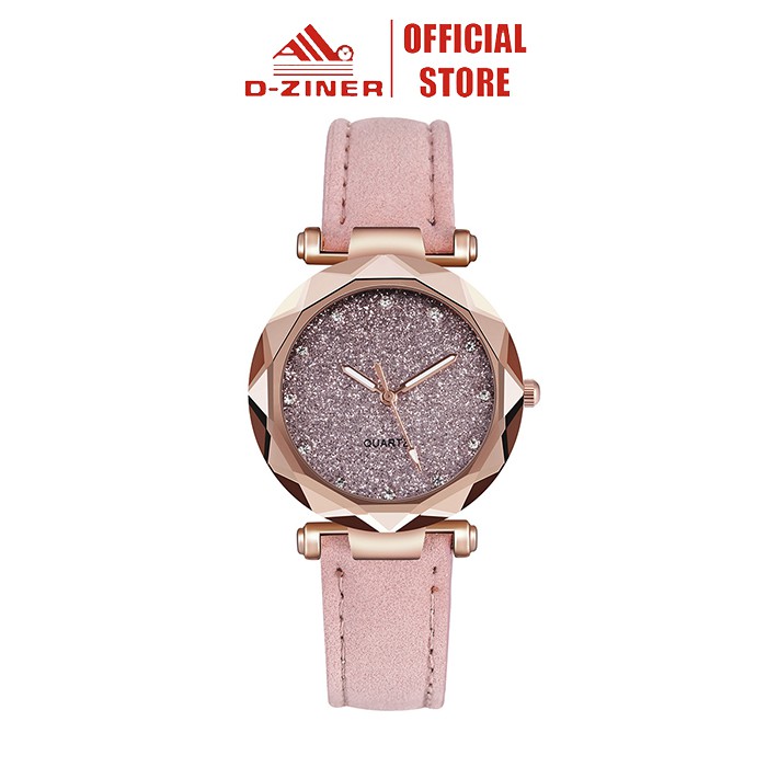 Đồng Hồ Nữ Dây Da Lộn D-ZINER Chính Hãng Thời Trang Mặt Tròn ND11 - LINDO free ship